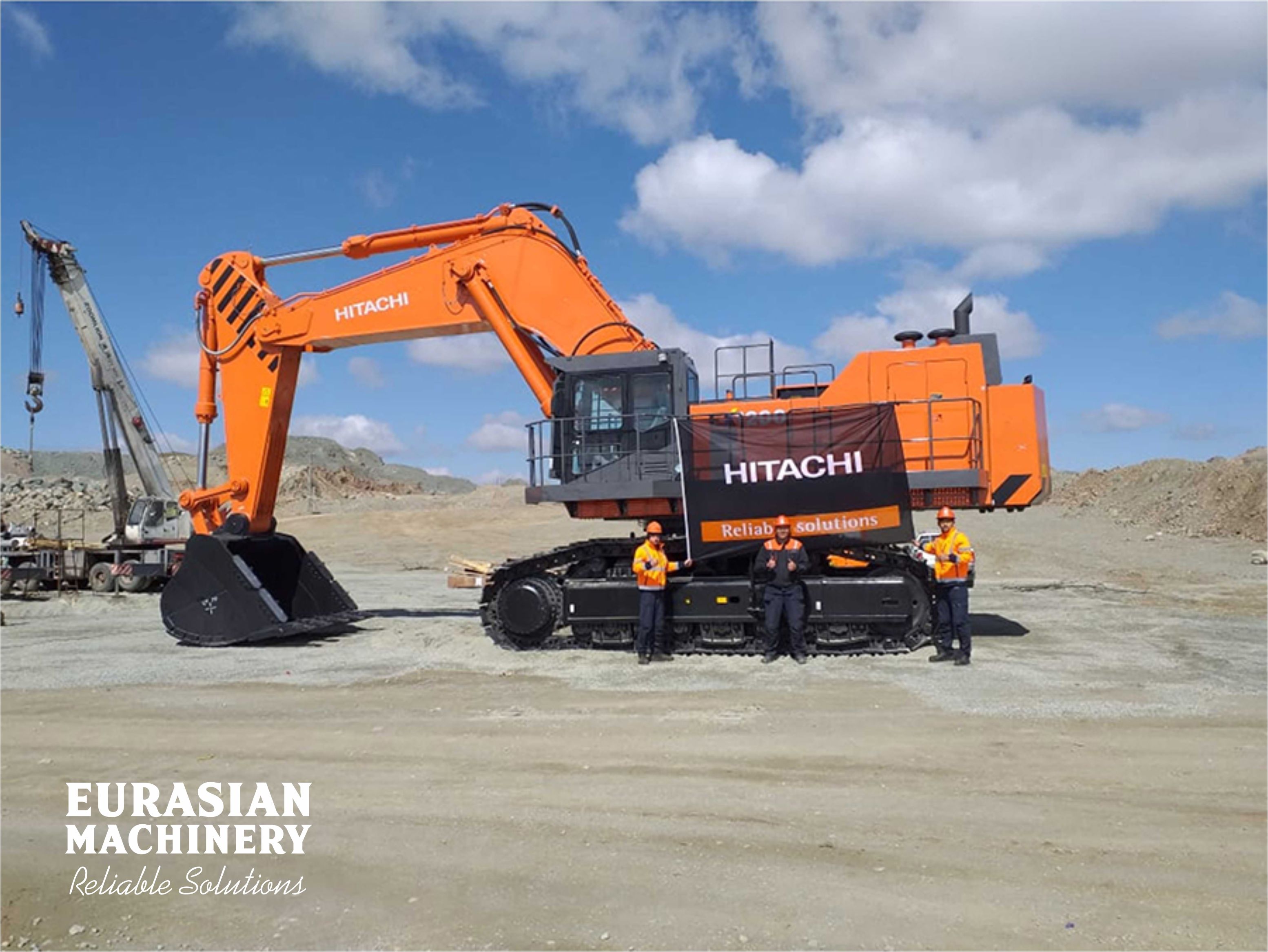 Technical specialists assembled HITACHI EX1200-6 hydraulic mining excavator at the Koktaszhal field of Altay Polimital LLP.