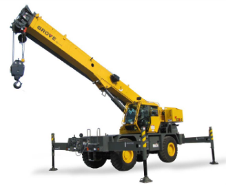 Grove Rough Terrain Cranes feature rugged deep box section frames designed to handle the tough conditions found on job sites. Four steering modes allow easy maneuvering in tight quarters. Since pick and carry applications are typical for RT's, Grove units feature excellent on-rubber operation to enhance…