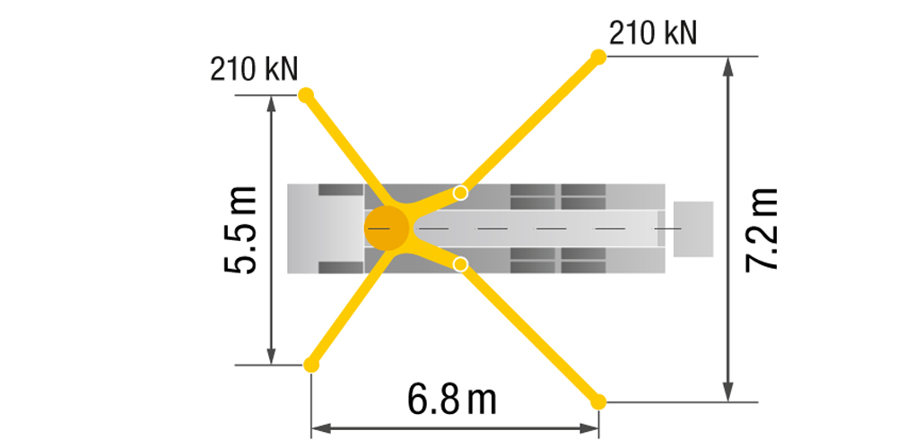 | Support width Standard (front-rear) | 5.5/7.2 m |