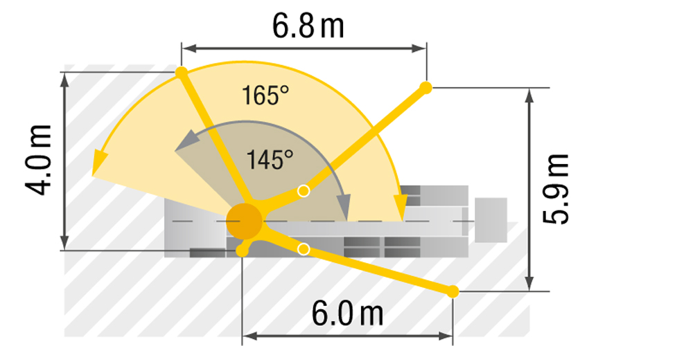 - Robust and stable due to reinforced base structure, compact boom pedestal, boom line installation, etc.