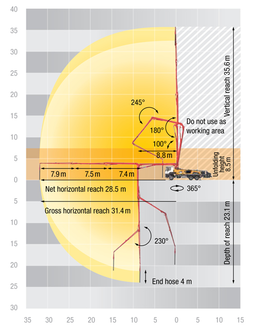 - Smoother, more flexible 4-arm placing boom with Z fold system, lower unfolding height and optimum slip characteristics