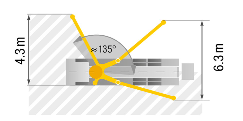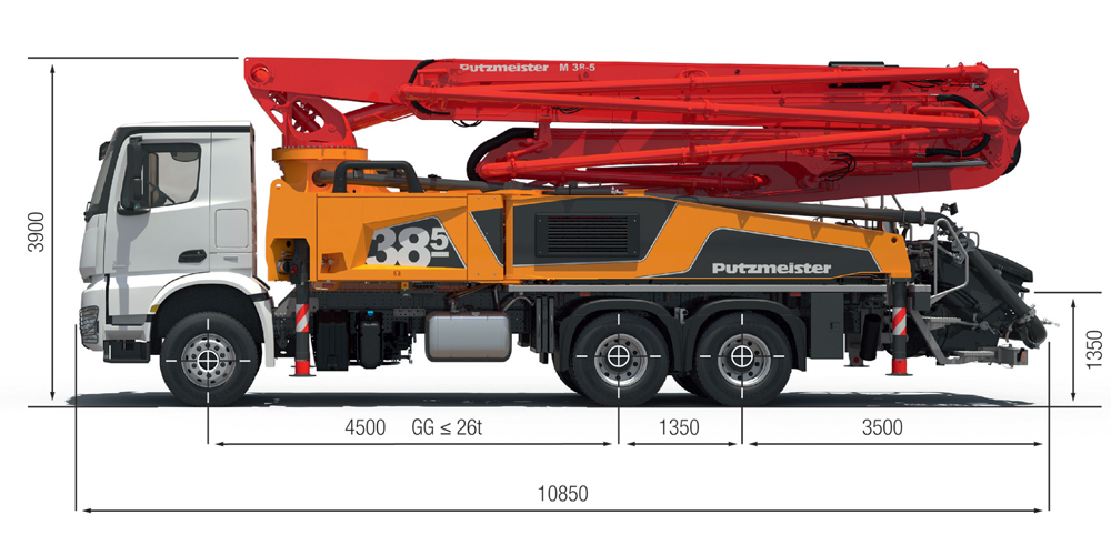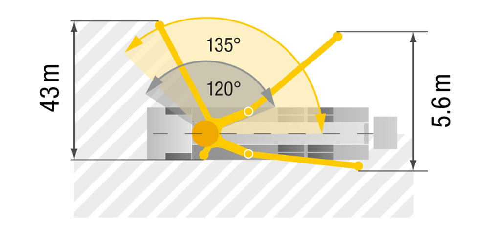 • Steady 5-arm placing boom, thanks to intelligent laying of the delivery line and the harmonious development of the steel structure
