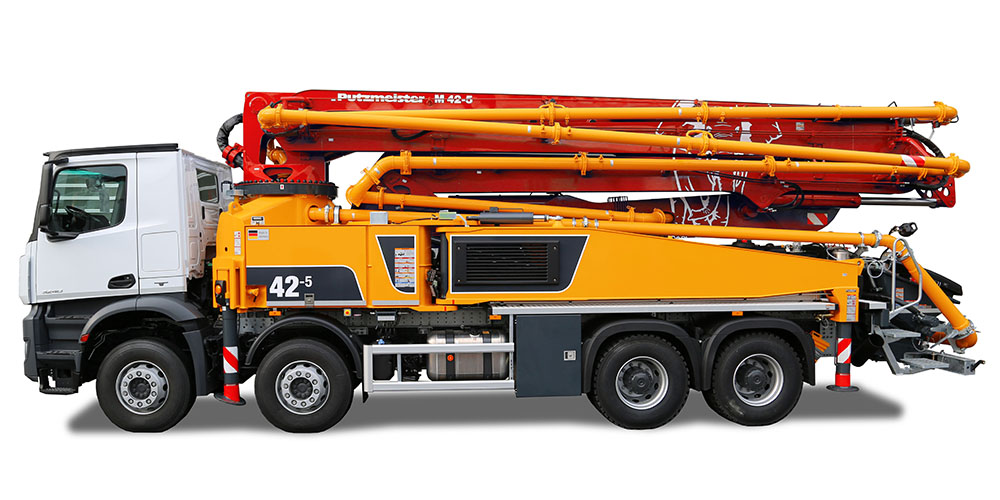 The Next Generation of the BSF 42-5 Truck-Mounted Concrete Pump The Putzmeister BSF 42-5 truck-mounted concrete pump has improved maneuverability and weight indices for 4 axle chassis. It is equipped with the OSS system, which allows you to work in a limited workspace. The concrete pump length is…