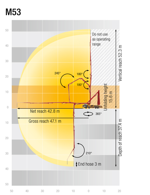 • High flexibility and more range for high ceiling concreting provided by the 6-arm placing boom