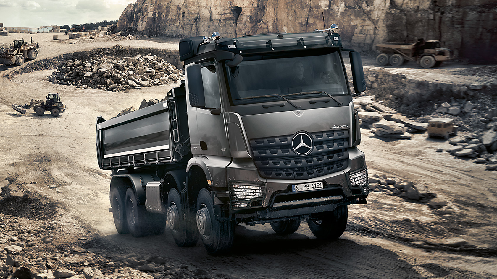 As an official dealer of Mercedes-Benz , we offer you the newest construction truck Mercedes-Benz Arocs. Mercedes-Benz Arocs sets the standards for heavy construction work - thanks to reliability, increased maneuverability and versatility. It doesn't matter if it is an on-board car, a concrete mixer or a dump truck, and it doesn't matter on two, three or four bridges - with Mercedes-Benz Arocos you can do any hard work. Whether it's a carcass, a drive or a suspension, the Mercedes-Benz Actros is an example to follow because of its uncompromisingly reliable and durable construction. We will configure a construction truck for you on individual conditions and with the required functions.